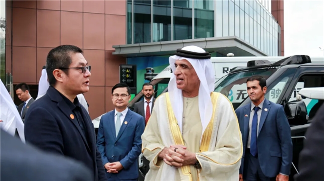 阿聯酋聯邦最高委員會成員、哈伊馬角酋長His Highness Sheikh Saud bin Saqr Al Qasimi參觀文遠知行Robotaxi GXR等產品矩陣